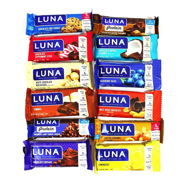 Luna Bar Assortment 12 Bars Mix Of Delicious Flavors To Enjoy 1 69oz Each 20 28 Oz Total Walmart Com